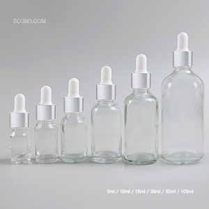 스포이드용기 5ml 10ml 15ml 30ml 50ml 100ml[투명 - 은 흰색캡 R18] - 유리